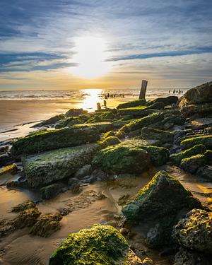 The coast of Galveston Bay offers a stunning sunrise view. This picturesque beach is situated in Seabrook, TX, near the bustling Port of Houston. It's an ideal spot to enjoy the early morning tranquility and natural beauty.