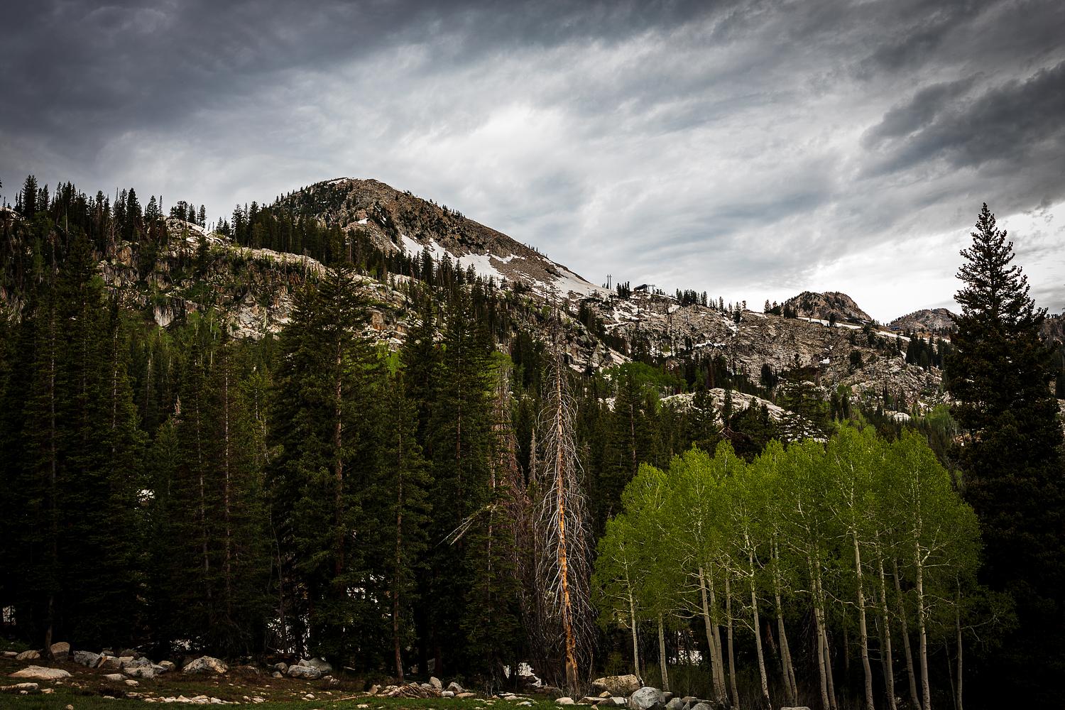 Discover the rugged beauty of the peak found along the trail to Lake Mary, captured in this striking photograph. The scene showcases the mountain's imposing presence, adorned with patches of snow and surrounded by a dense forest of evergreens and aspen trees. The dramatic, overcast sky adds a sense of mystery and grandeur, highlighting the raw, untamed essence of the landscape. This photograph is perfect for nature enthusiasts and adventurers who appreciate the majestic allure of mountain scenery. Bring the awe-inspiring beauty of this peak into your home and let it serve as a reminder of nature's incredible power and serenity.
